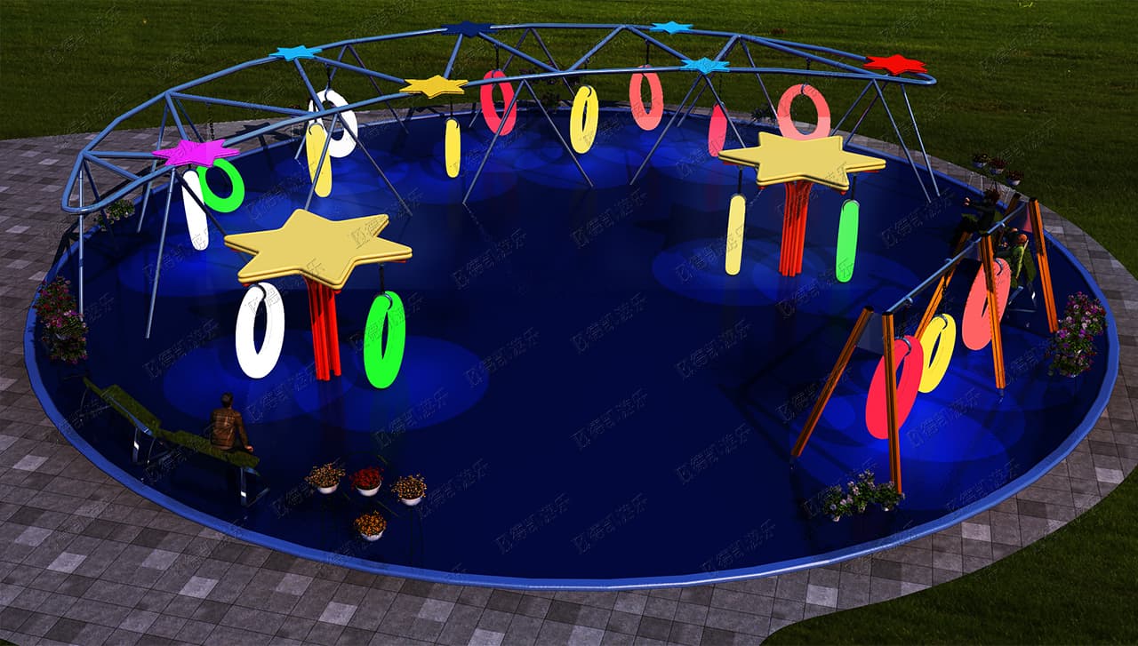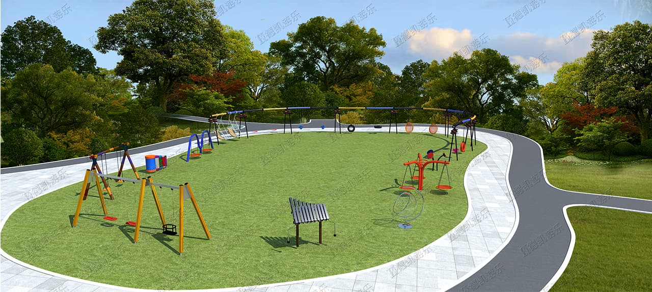 此項目包含:彩虹傘、月光秋千、蝴蝶蹦床、樹枝秋千、敲打樂器、組合秋千、搖籃秋千等產品!