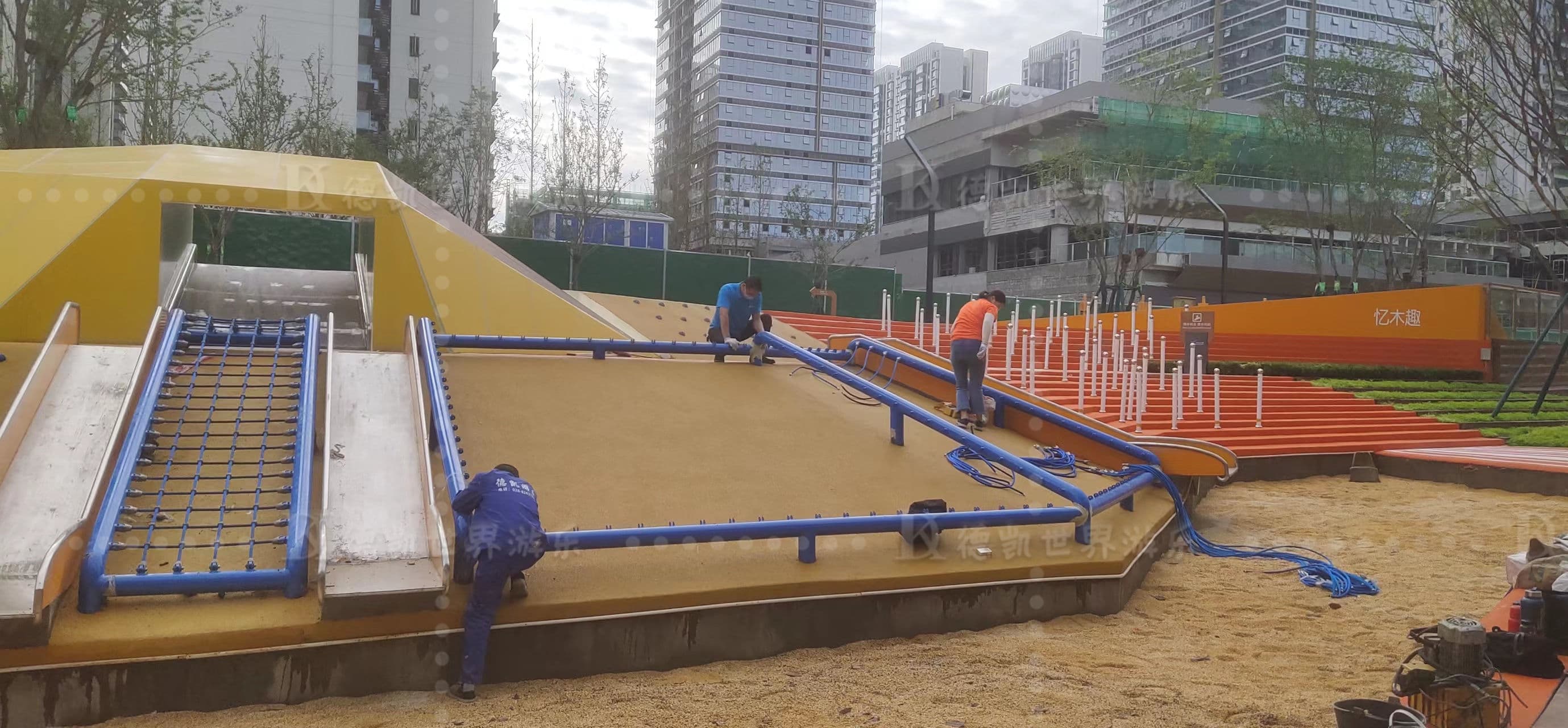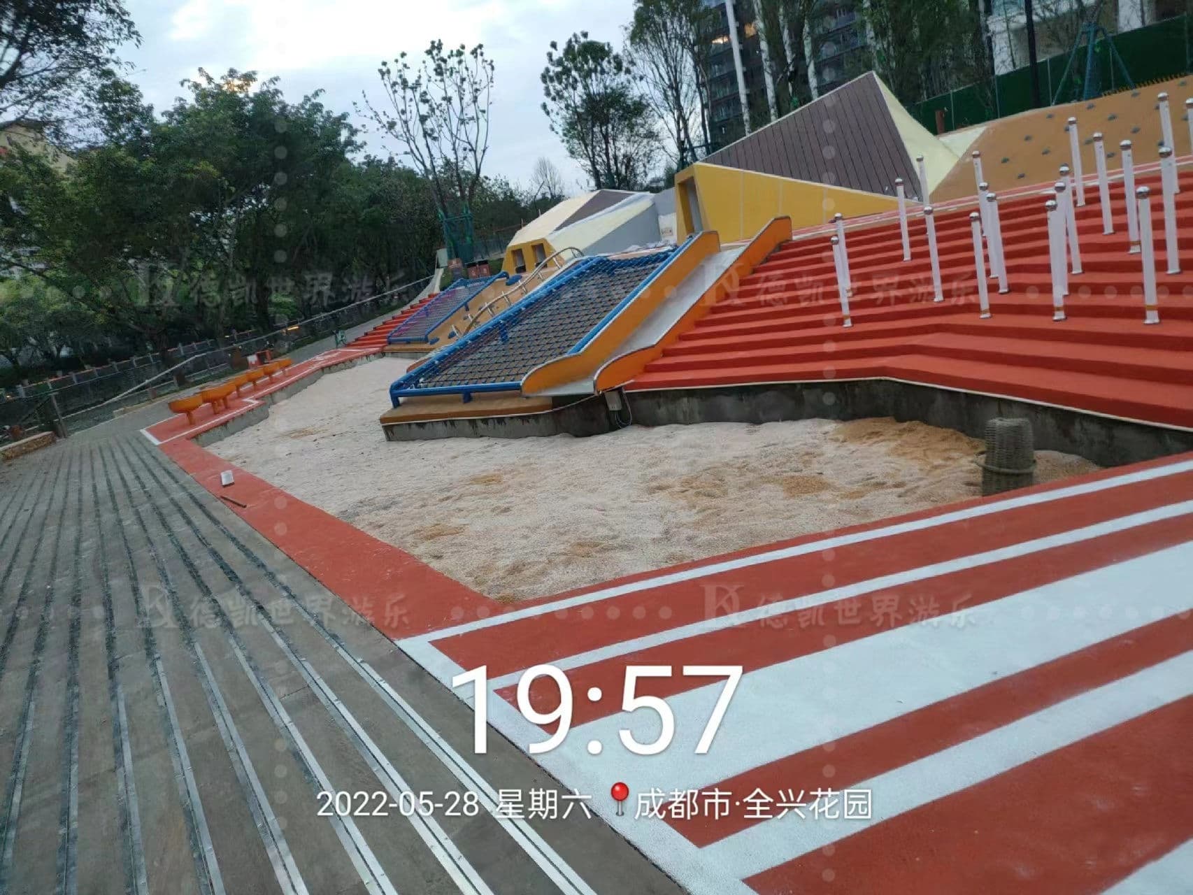 成都濱河公園游樂設施安裝完工,本著休閑娛樂,拓展運動為主。游樂設施涉及蹦床、滑梯、沙池、攀爬繩網、其它單品等,滿足不同年齡段人群互動體驗。