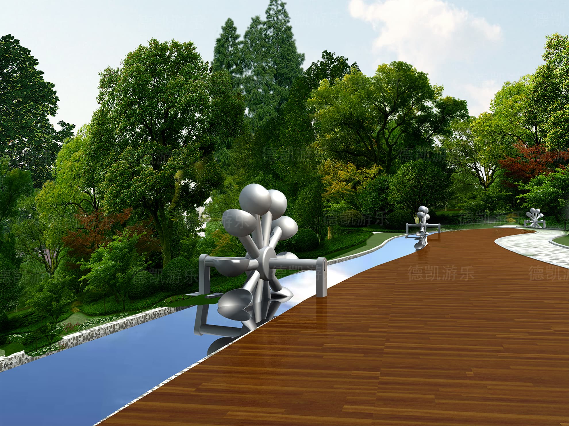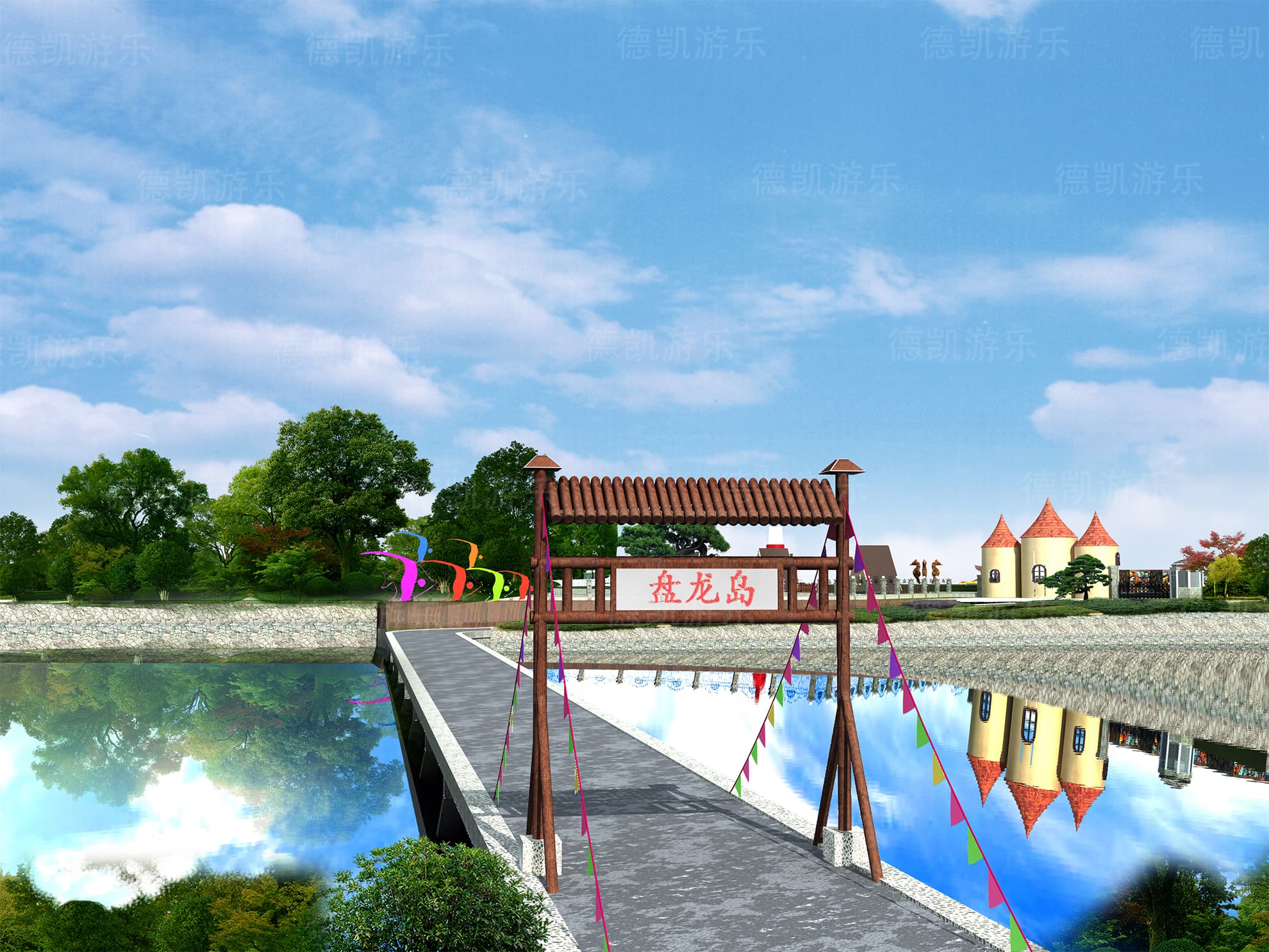 在這個角度看,整個項目完成后周圍環境就可以清晰的看見,因為主要修飾的是我們的設計部分,因此,設計區域的效果更好一些。彩虹門,水車又是激起孩子們探索興趣的寶貝,他們會歡快的穿過彩虹門,在小亭子休息一會會,趕緊又跑到又水車的地方,探索水車運轉的規律和樂趣。
