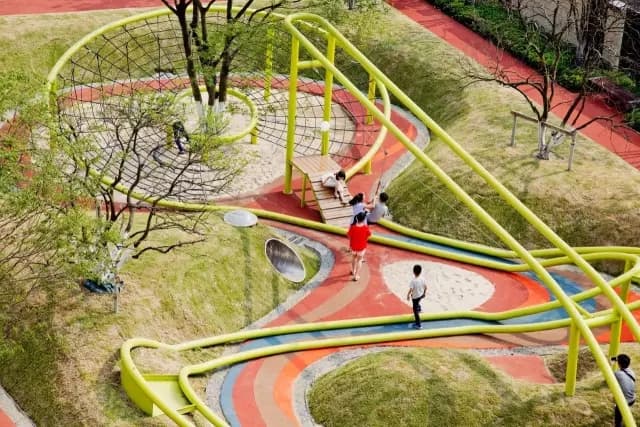一般是根據室外原有的地形形態,利用隱隱起伏的地形,搭建相應的活動設施,為兒童打造一處“微地形”游戲場所。
