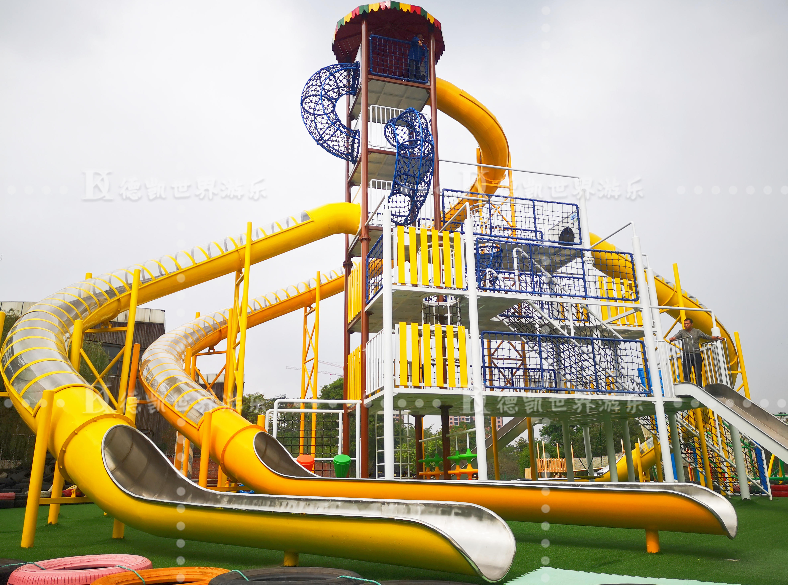 戶外游樂園不能缺少是兒童滑梯,滑梯是游樂設備的經典作品,滑梯組合是兒童滑梯的升級版。廠家可以按照景區的特點來定制出造型各異的滑梯造型,并且滑梯的材質讓人放心,維護成本低,可承受能力強,能夠同時接納數幾十人玩耍,是一個建設成本相較于比較低的游樂產品。