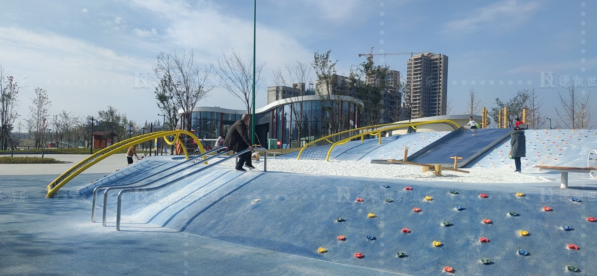 樂(lè)園集攀、爬、蹦、跳、躍等兒童游樂(lè)行為于一體進(jìn)行設(shè)計(jì),大人小孩皆可玩耍。主要游樂(lè)設(shè)施有滑梯,攀爬點(diǎn),沙坑,廊架、蹦床、鉆籠、搖搖樂(lè)、攀爬網(wǎng)等,趣味十足,也很有挑戰(zhàn)性。一起來(lái)詳細(xì)了解一下把。